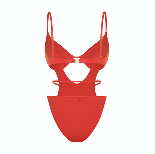 ESC2M Titania Women's Cherry Red V-Neck Cross-Back Swimsuit