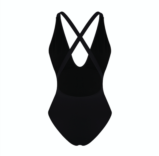 ESC2M Titania Women's Midnight Black V-Neck Cross-Back Swimsuit